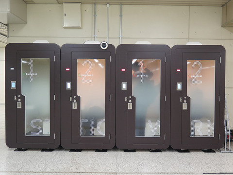 現在、実証実験が行われているのは駅構内で個室のワーキングスペースが利用できるSTATION BOOTHで、筆者は東京駅の予約を取って実装実験に参加してきました。東京駅のSTATION BOOTHは法人向けの「Business」と一般向けの「Personal」のブースが各2つずつの合計4つ設置されていました。なお、BusinessとPersonalは内装や設備は同じとなっています。利用できる時間帯は9時00分から21時00分までで、実証実験なので1コマ15分単位での予約となり、1回あたりの利用上限は2コマ30分となり、2回分までの予約が可能。利用についてはSTATION WORKの専用Webページからスマートフォン(スマホ)やタブレット、パソコン(PC)などから専用のアカウント作成を作成して予約登録を行い、予約した時間にブースに行けば無事に利用開始となります。