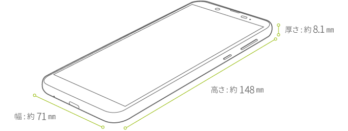 | サイズ(幅×高さ×厚さ)/重さ | 約71×148×8.1mm/約149g | |