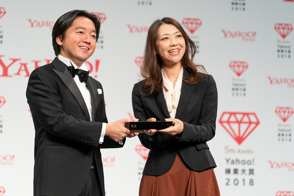 Yahoo!検索大賞は2014年から毎年開催しており、今回で5回目の開催となり、Yahoo!検索のデータを元に前年と比べてその年の検索数のうちで最も急上昇した人物・作品・作品を選出するものだ。