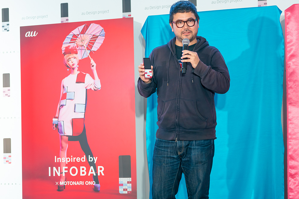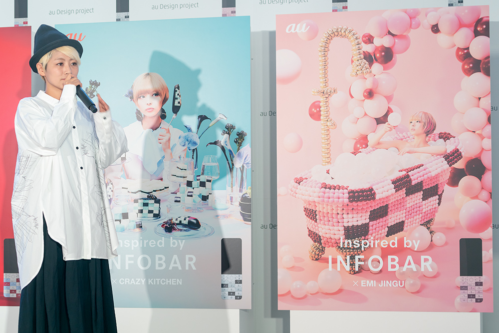 KDDIが都内にて「“Inspired by INFOBAR”発表会」( https://adp.au.com/inspired-by/ )を11月30日に開催し、今も多くの人に愛されるデザインケータイ「INFOBAR」シリーズのファンを公言している3組のクリエイターによって製作した作品が公開された。