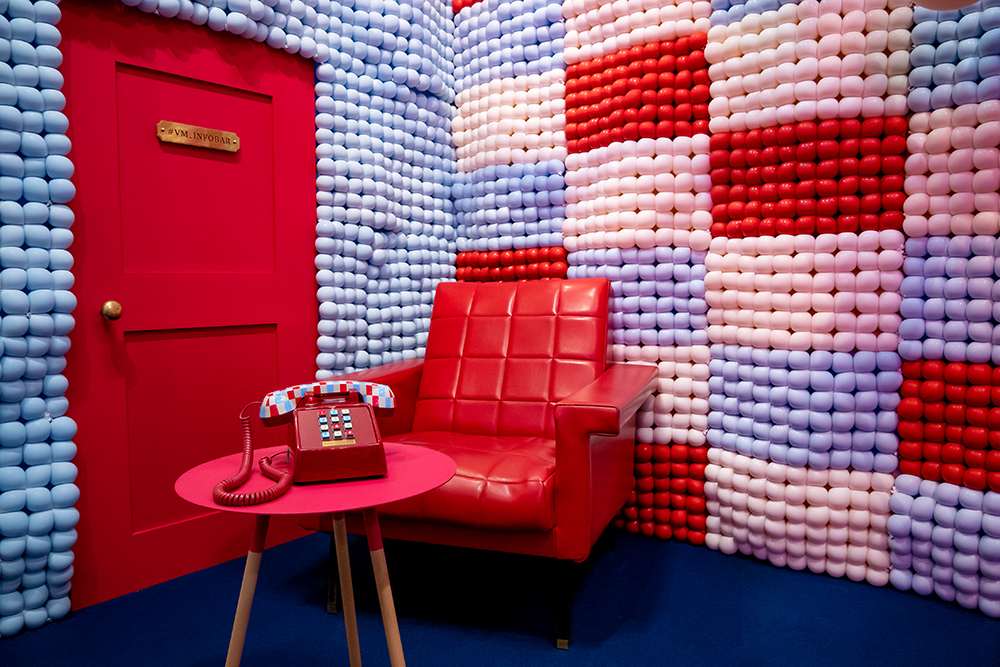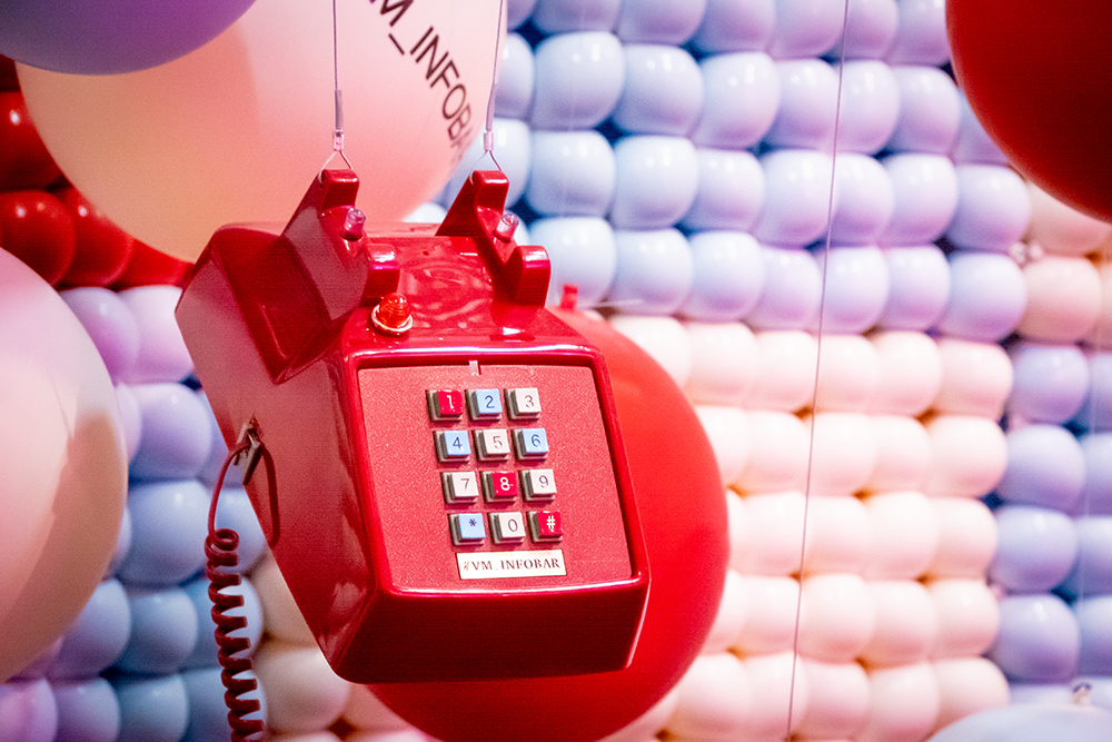カラフルなバルーンとNISHIKIGOIをイメージした電話機など独特の世界感を是非体験してみて欲しい。