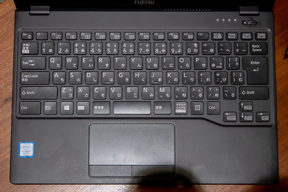 キーボードは打ちやすさにこだわったLIFEBOOKシリーズ伝統のキーを使用。軽量化するためにキーが犠牲になっておらず、カーソルキーなどの大きさも十分確保された使いやすいキーボードである。