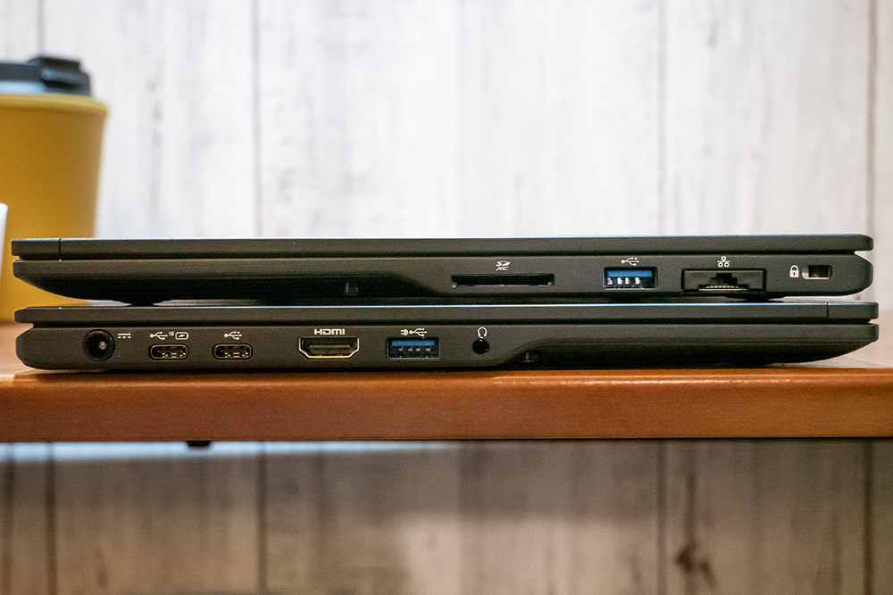 側面の端子類は、SDカードスロットをはじめ、有線LAN、USB Type-C、USB 3.0、HDMI端子など充実している。