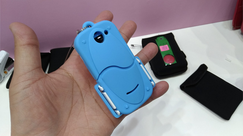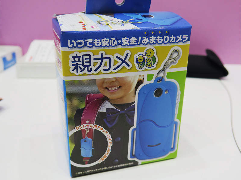文具メーカーで有名な「ぺんてる」の関連会社のオリエント・エンタプライズのブースでは自動写真撮影機能搭載の子供用見守り端末、「親カメ」が展示されていました。