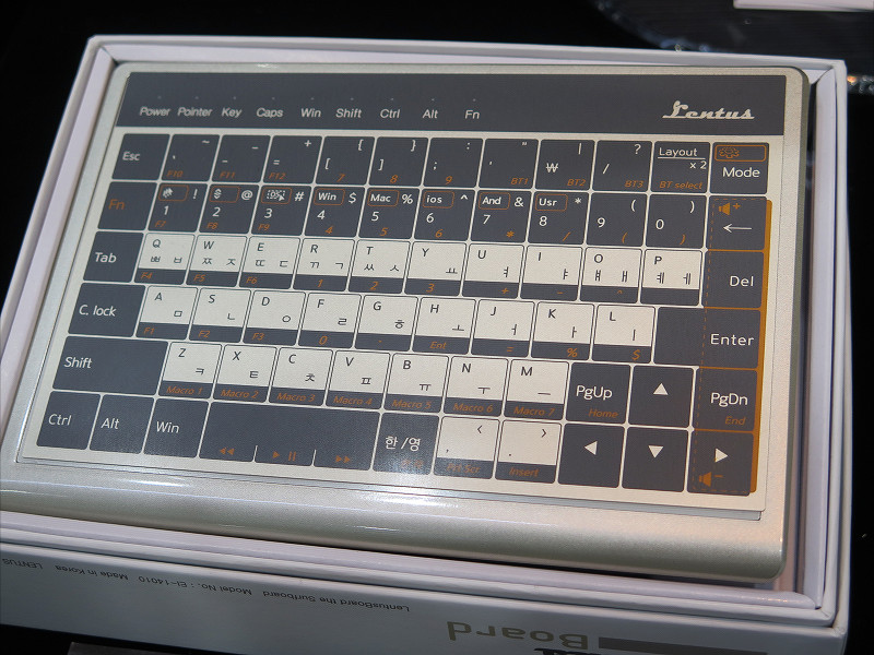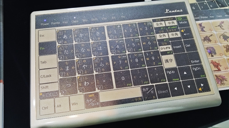 海外のモバイル関連アイテムや雑貨の輸入販売、国外のベンダーとのODM、OEMの調整・対応などを行っているEFGのブースに展示されていた「Lentus」(レントス)は指を滑らせて操作すればトラックパッドとしてマウスカーソルを操作でき、キー部分をタッチするとキーボードとして、文字入力などが可能になる統合型のキーボードを展示していました。