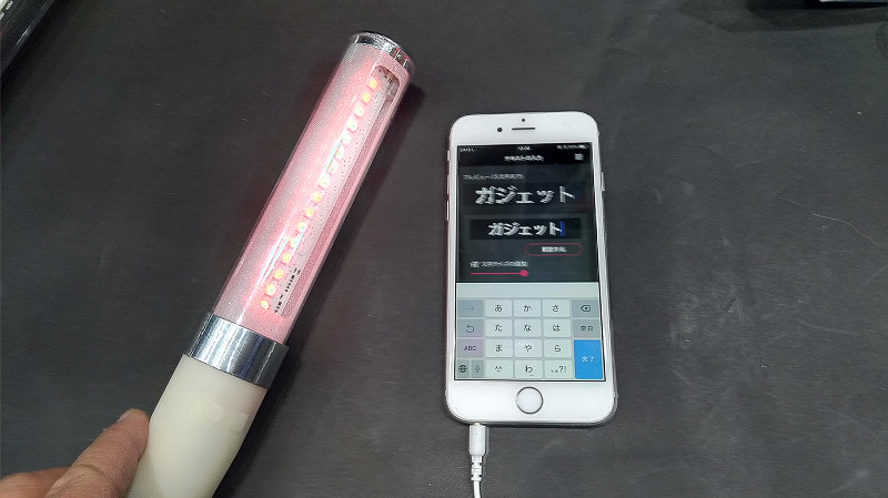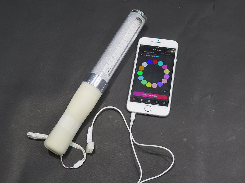 まずトップバッターはLED機器や法人向けの照明用品のほか、コンシューマ向けにデザイン雑貨やバラエティグッズを製作・販売しているエクスプロアのブースにて見つけたスマホやタブレットのアプリを使って表示する文字を編集できるサイリウム(スティックライト)の「EL.SHOWBEAM」から紹介します。