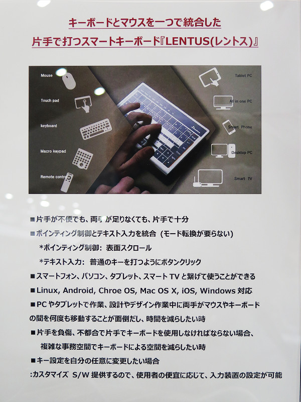 【EFGブース:マルチOS対応のトラックパッド兼キーボード「Lentus」】