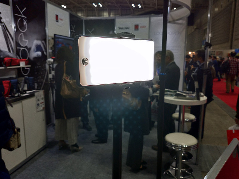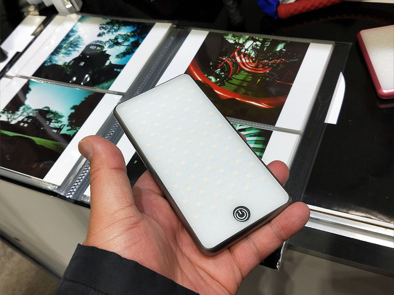 トイカメラやフィルムカメラなどのほか、カメラ関連のアクセサリーを展示していたラウジャパン/SAEDAブースのブースには「スマートフォン型のLEDライト」が展示されていました。