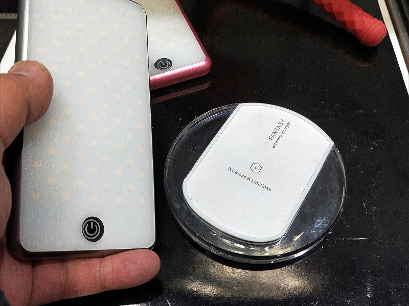 また、このLEDライトのバッテリーもスマホと同様に充電式のものとなっているのですが、充電にはワイヤレス充電のQi(チー)を使います。充電式のLEDライトというだけであれば、それほど珍しいものではないですが、本機を充電する手段がQiのみというのは中々に尖った特徴だと思われます。