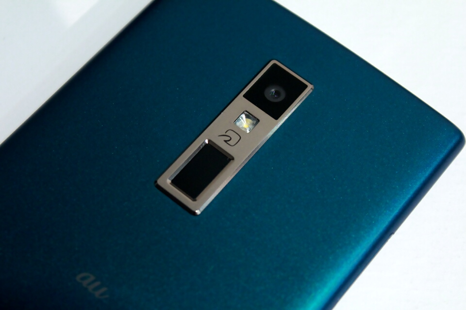 背面上部にはカメラ、FeliCaポート、指紋センサーを搭載。指紋センサーは、上下になぞったり、2回タップといった操作で、画面のスクロール(センサースクロール)や拡大縮小表示(センサーズーム)が可能。指紋センサーによる画面操作の設定は「ユーザー補助」からできる。