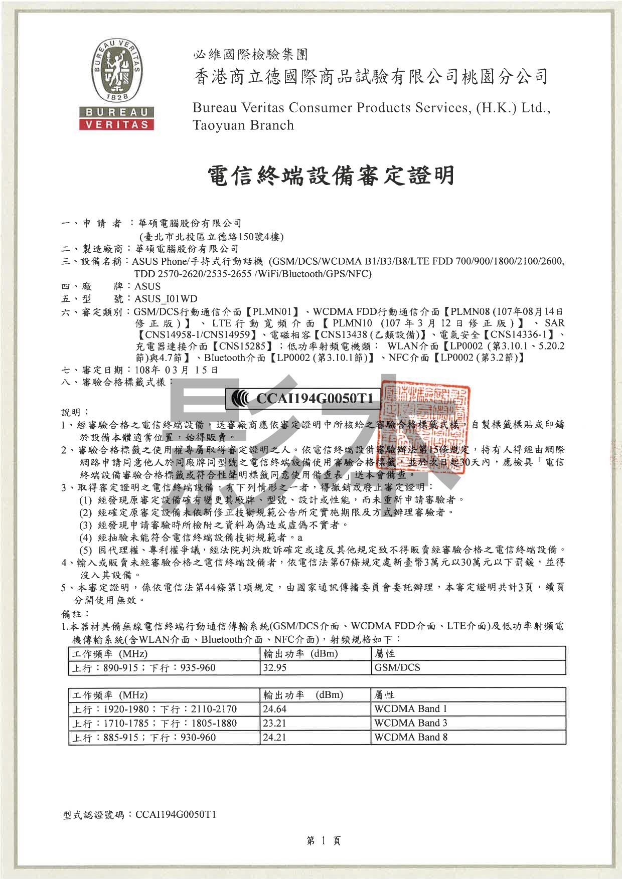 ASUSTeK Computer(以下、ASUS)が開発する未発表のスマートフォン(スマホ)「ASUS_I01WD」が台湾の国家通訊伝播委員会(National Communications Commission;NCC)にて2019年3月15日付けで認証を取得しています。認証番号は「CCAI194G0050T1」。