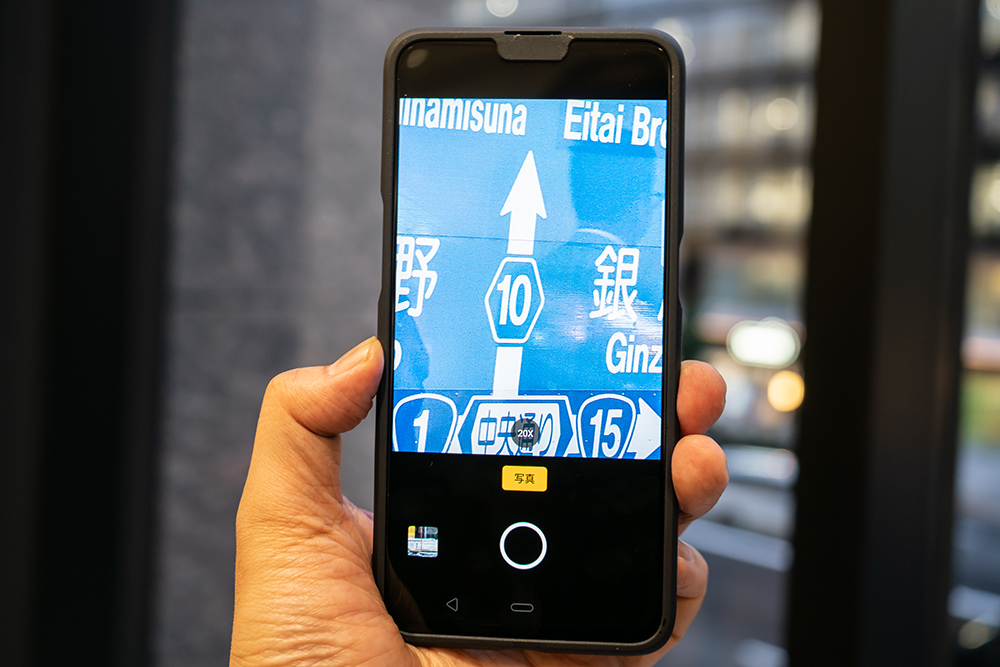 10倍までズームしてみると交通標識が画面一杯に広がった。OPPOの発表ではこの焦点距離において画素数的に劣化なしの望遠ズーム撮影を実現したとしている。