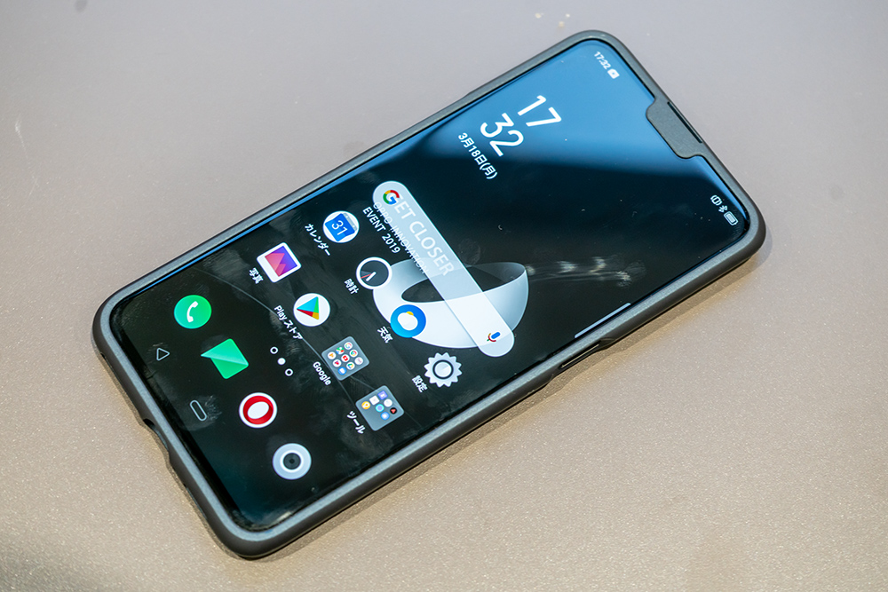 展示されていたのは試作機ということで、画面上部中央にあるノッチ(切り欠き)部分を隠した特別仕様モデルだった。同社ではいち早くノッチの面積が狭い“水滴型”を採用しているが、隠しているので従来ともまた違う形状となる可能性もありそうだ。