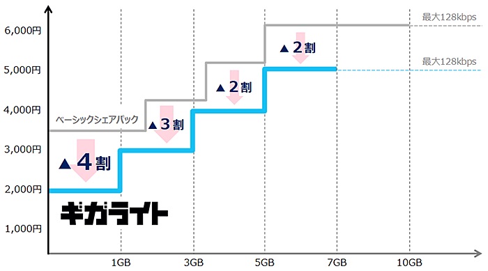 | ギガライト(Xi) | ステップ4 <~7GB> | 5,980円 | 7GB | 送受信時 最大128kbps | |||