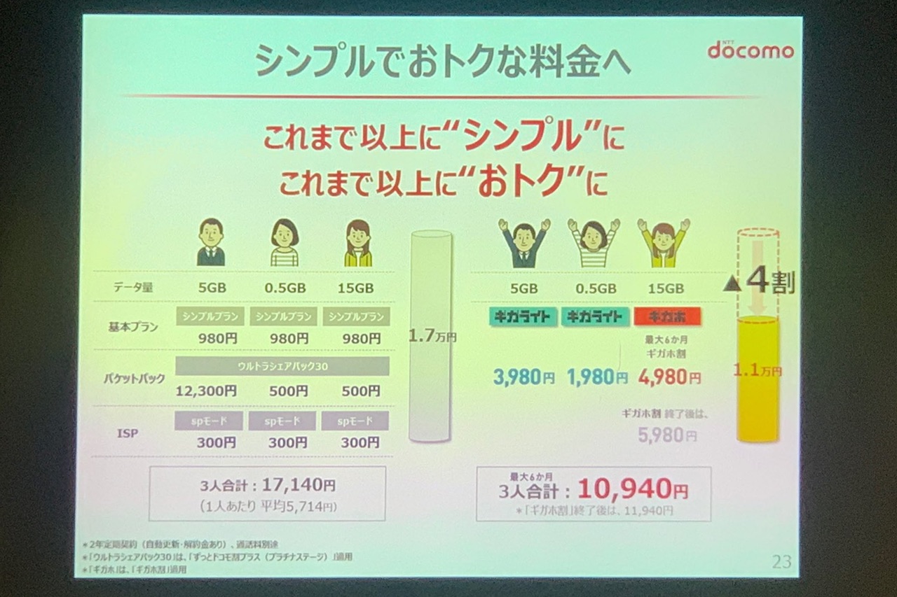 NTTドコモは15日、都内にて「新料金プラン発表会」を開催し、スマートフォン(スマホ)向けによりわかりやすくシンプルになった新料金プラン「ギガホ」と「ギガライト」を2019年6月1日(土)に提供開始すると発表しています。また提供開始に先立って2019年5月22日(水)に予約受付を開始するとのこと。