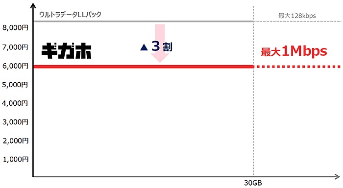 ギガホとギガライトの違いはギガホが月30GBまでの完全定額制で、ギガライトが月1GB・3GB・5GB・7GBまでの段階的な定額制となっており、中でもギガホでは毎月の利用可能なデータ通信量の上限到達後も従来の送受信時最大128kbpsと比べて約8倍の速度の送受信時最大1Mbpsとなり、動画・SNSなどのさまざまなコンテンツが利用可能です。