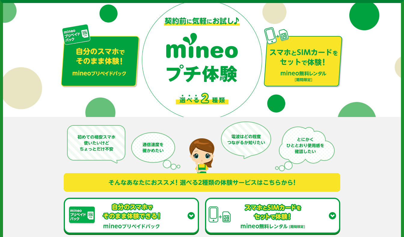 最後に筆者からの提言として、MNOの料金が高いのか安いのかを判断する前に、ぜひともMVNOやサブブランドキャリアの通信品質を体験していただきたいというのがあります。例えばmineoでは「mineoプチ体験」として、最大2週間無料でmineoの回線を利用できる「mineo無料レンタル」や、買い切り200円のプリペイドSIMを販売しています。