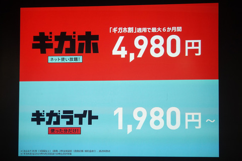 ギガホおよびギガライトはともに既存の料金プランにおける基本料金プランとISPサービス、パケットパックがセットになっており、1回線で利用する場合に2年契約ならギガホが月30GBまでの高速データ量が利用できる月額6,980円の定額プラン、ギガライトが月1〜7GBまでの高速データ量が利用できる月額2,980〜5,980円の段階制定額プランです。