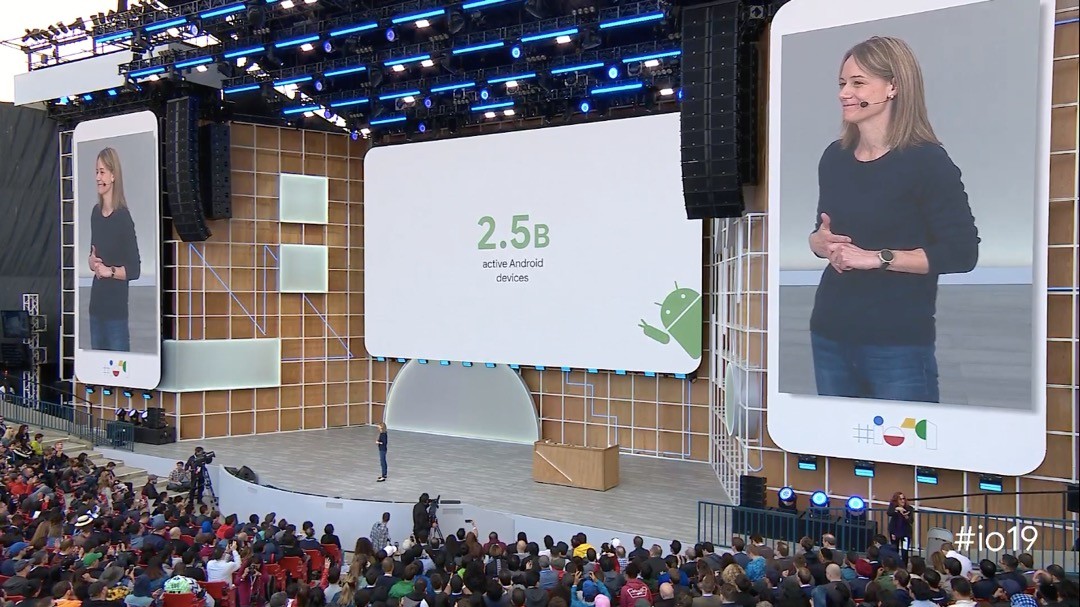 Google I/O 2019においてAndroid Qの説明を行ったのはいつものDave Burke氏ではなく、GoogleでAndroid部門のDirectorを務めるStephanie Saad Cuthbertson氏でした。同氏はまずAndroid Qが“Androidバージョン10”になることを紹介し、現在、Androidが25億を超えるアクティブデバイスとなっていることを示しました。今日はAndroid Qの次の機能について学びます。