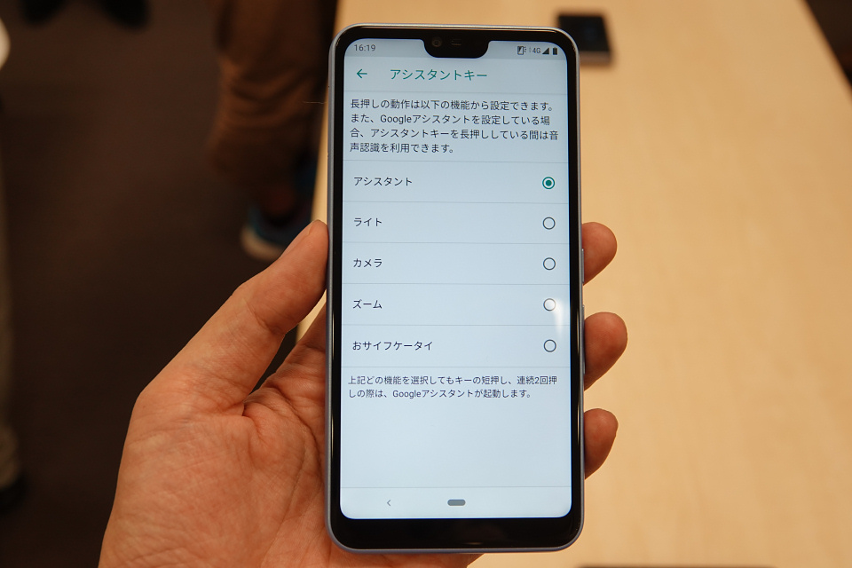 また最大の特徴は本体右側面に備えられたGoogleアシスタント専用キーで、多くのAndroid搭載製品ではホームボタンの長押しや「OK, Google」と呼びかけることで「Googleアシスタント」を起動しますが、あえて専用キーを搭載することによってはじめてスマホを利用する方などでも迷うことなく利用できるようにしているとのこと。
