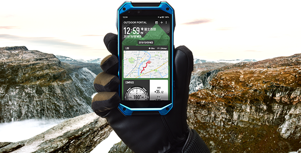 さらに海や山などの過酷な環境下でも自在に使える卓越した操作性を備え、画面や手が濡れた状態でも使える「ウェットタッチ」とグローブをしたままでも 使える「グローブタッチ」に対応し、グローブを着けたままでも押し やすい大型のボタンを本体の側面に配置しています。