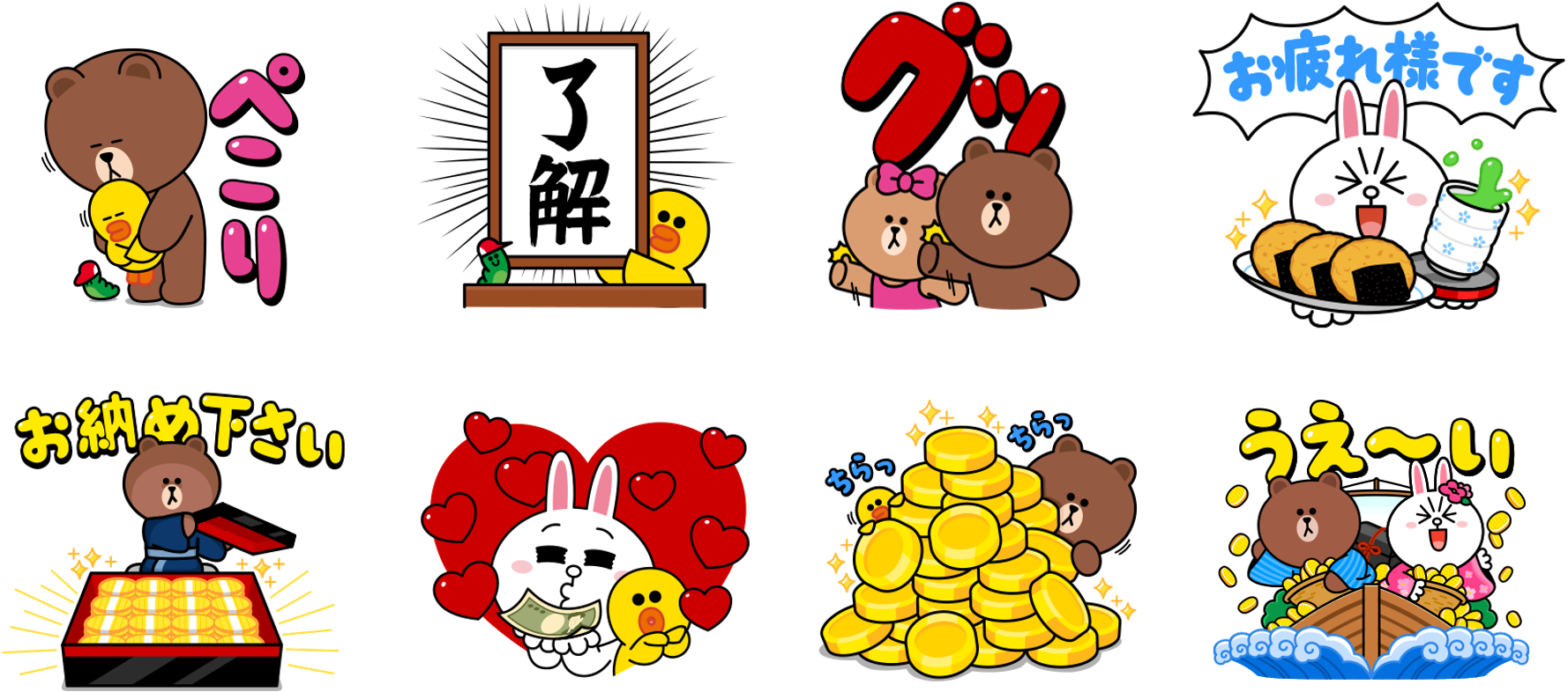 またキャンペーンに参加して友だちに1,000円相当のLINE Payボーナスを送信完了すると、キャンペーンキービジュアルや元号発表をモチーフにしたLINEキャラクター起用の「LINEスタンプ」(全8種類)もプレゼントされます。自分で無料でダウンロードする必要がありますが、キャンペーンを通してLINEの友だちとやりとりする際に楽しく使えます。