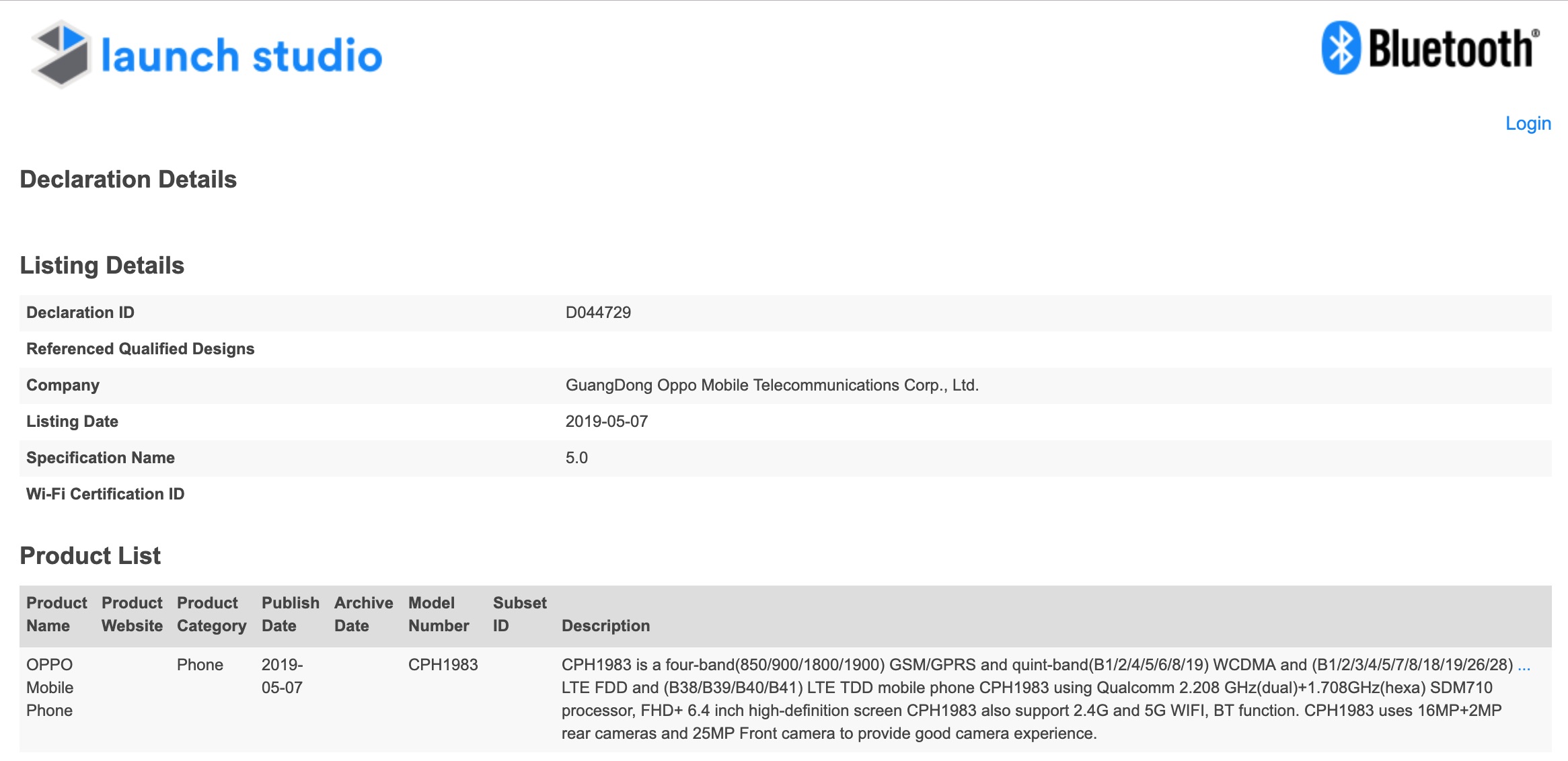 ・D044729 - Launch Studio - Listing Details - Bluetooth SIG