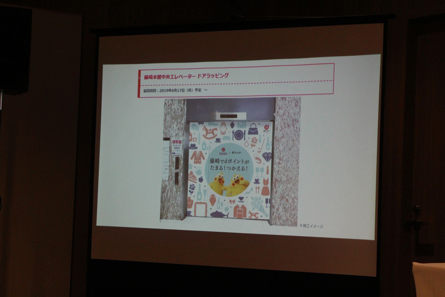 また、本館中央エレベーターが6月17日からポインコ兄弟のラッピングがなされ、SNSでの拡散、インスタ映えなどを狙っているとのこと。また8月1日より、仙台市民にとってはおなじみの藤色の紙袋にポインコ兄弟があしらわれたコラボ紙袋が登場します。