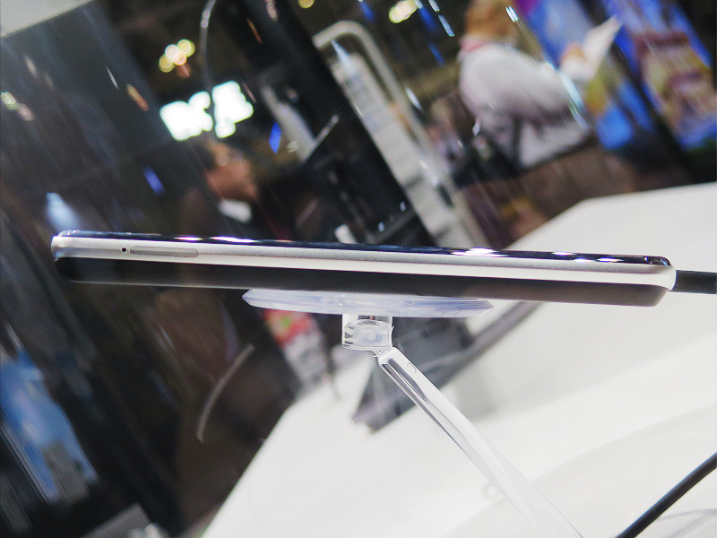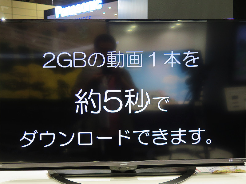説明員によると、本来は展示物リストにないものではあったとのことですが、5G通信で大容量の動画などのコンテンツを快適にダウンロード・ストリーミングで視聴できる機器としてわかりやすいものを展示したいという話から今回の5Gスマホの展示となったそうです。