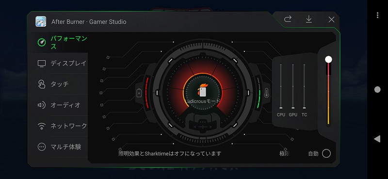 ゲームアプリの動作に関するパフォーマンスの設定では「極限モード」が設定可能。バッテリーの消耗が大きくなるものの、CPUのコアを全力でフル稼働させ、本体内の温度制限も止めるまさに「フルブースト状態」でゲームアプリを稼働させることができます。