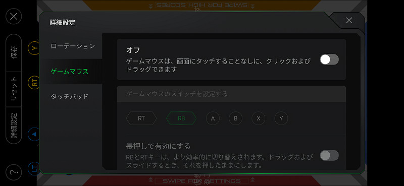本体右側面にあるスライドスイッチをオンにすると「SHARK SPACE」(ゲーム特化)モードに入ります(スイッチを切るとモード終了)。SHARK SPACEモードでは、ゲームごとに専用ゲームコントローラーのボタンマッピング内容の編集やディスプレイの色調などの設定、各種通知のオンオフ切り替えといったさまざまな項目をカスタマイズ・保存することが可能です。