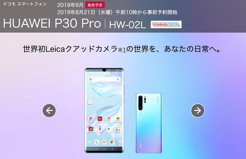 | docomoの今夏発売スマホ「HUAWEI P30 Pro HW-02L」が予約再開に! |