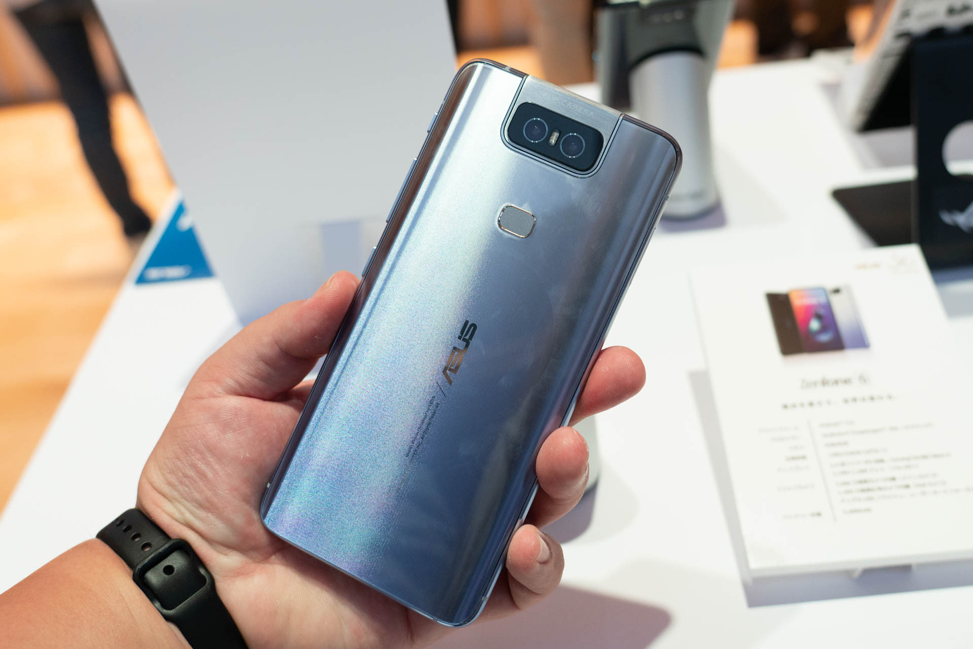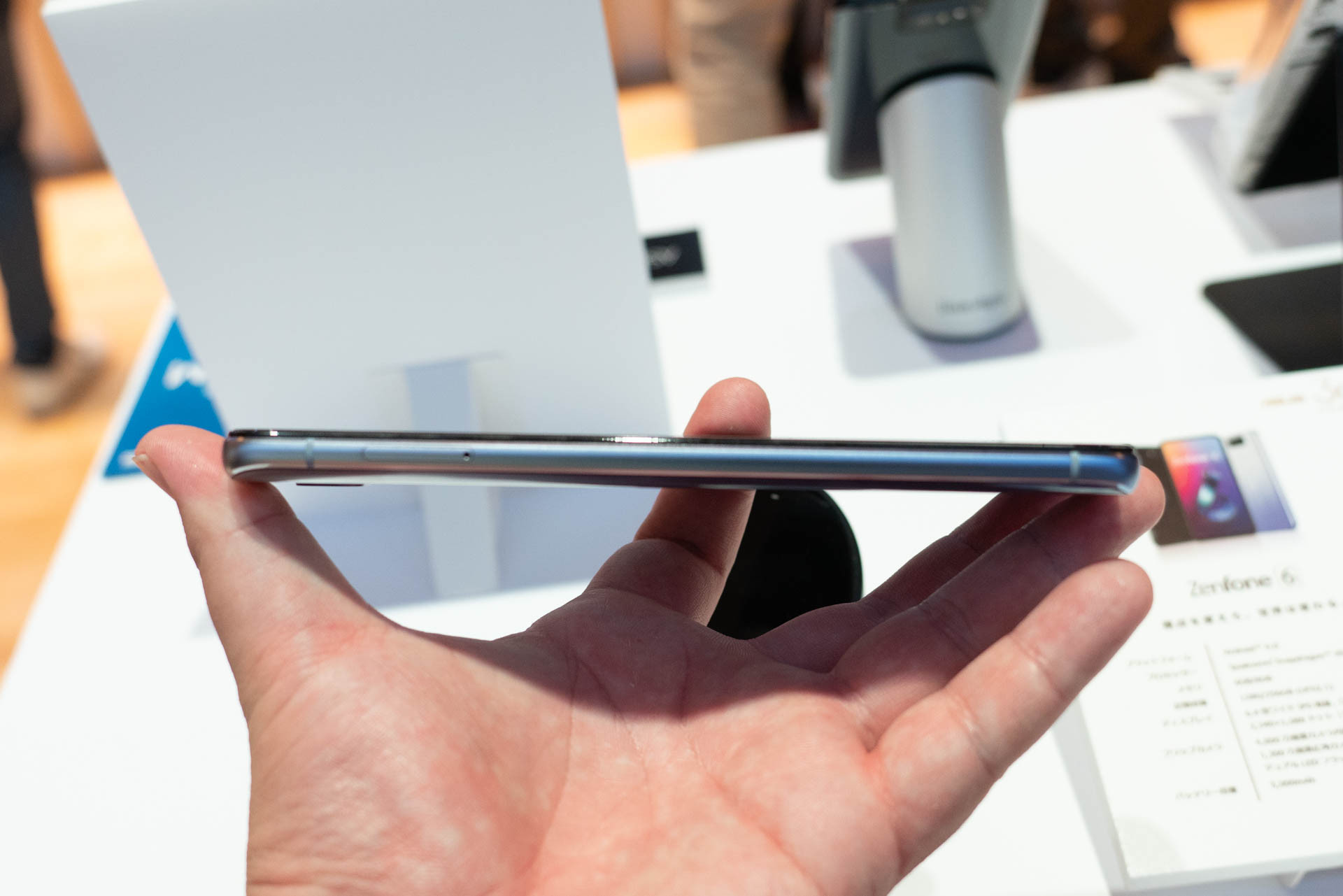 今回は発表会会場に併設されたタッチ&トライコーナーでZenFone 6 ZS630KLの通常モデルに加えて30周年記念モデルも合わせてそれぞれ実機を試すことができましたので、写真や動画を交えて製品の外観や特徴を紹介したいと思います。