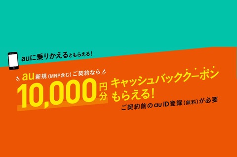 | auの新規・MNPで1万円分キャッシュバッククーポン! |