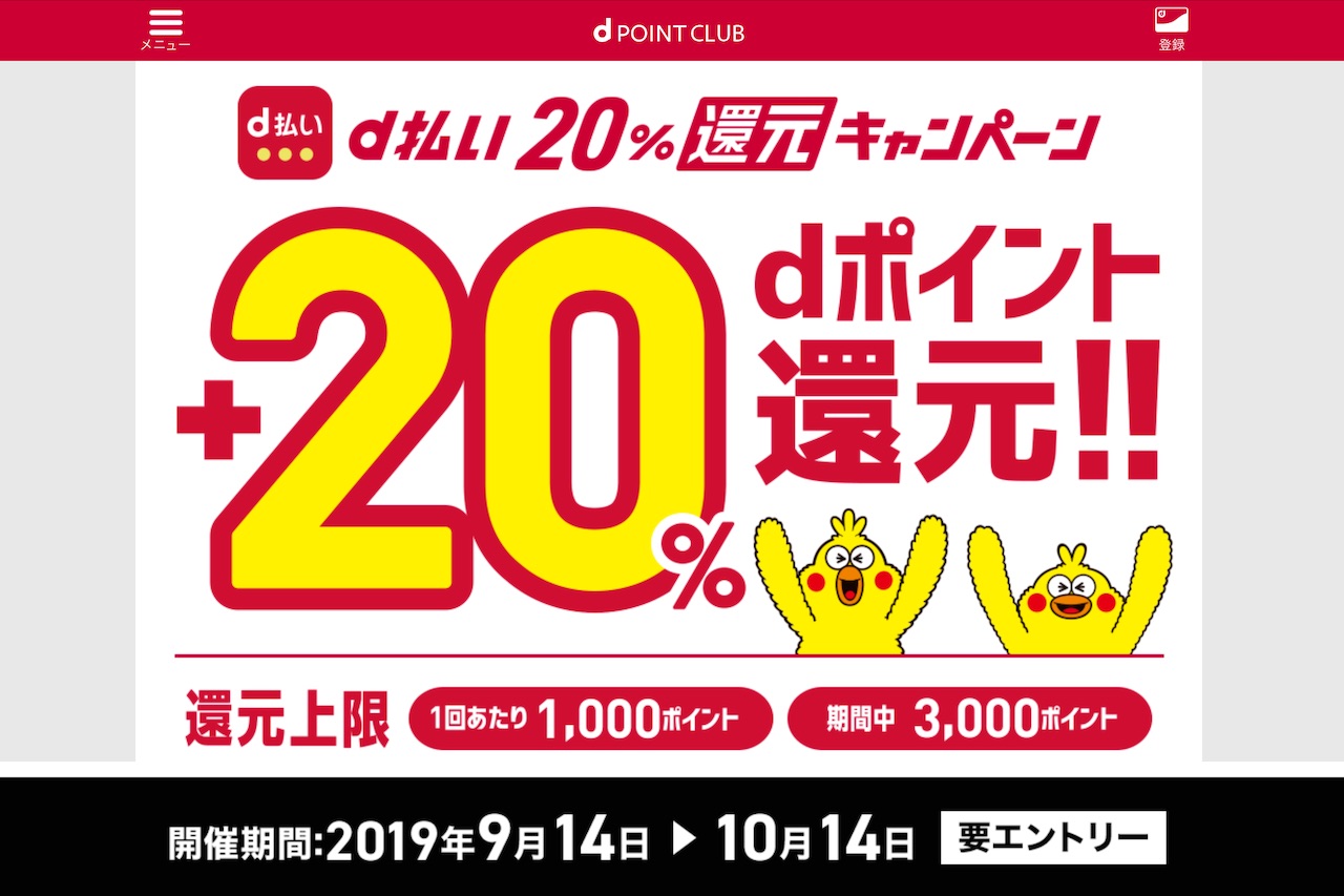 | d払い(ネット・街のお店)で20%還元キャンペーンが実施! |