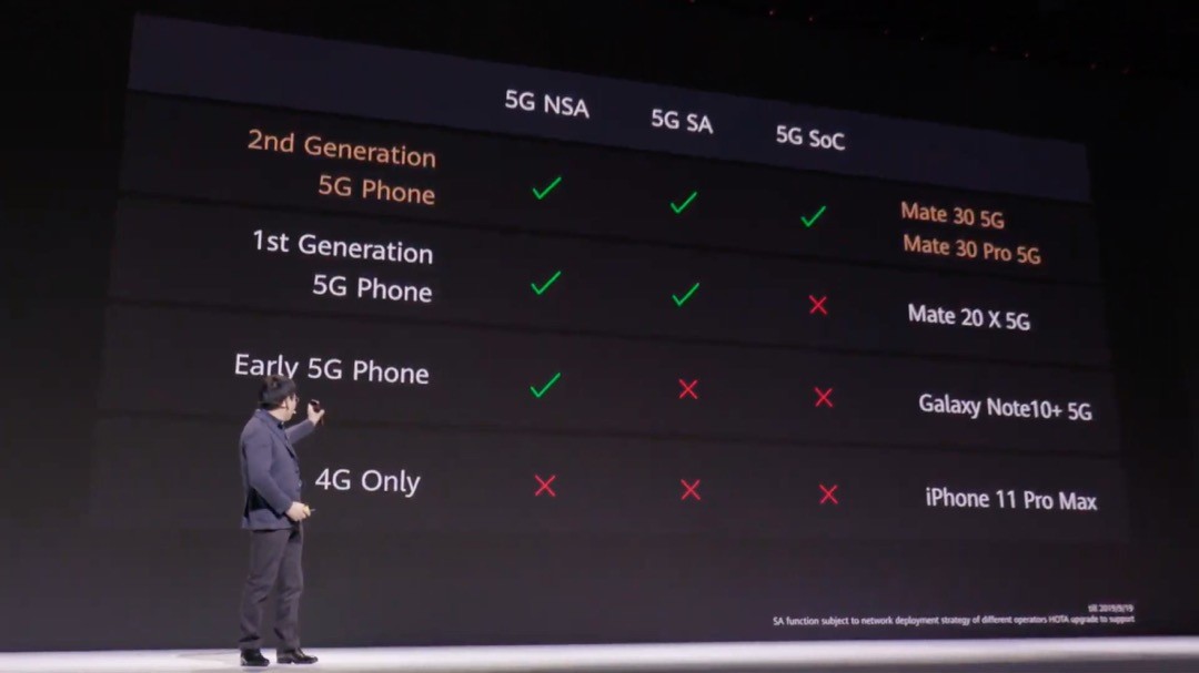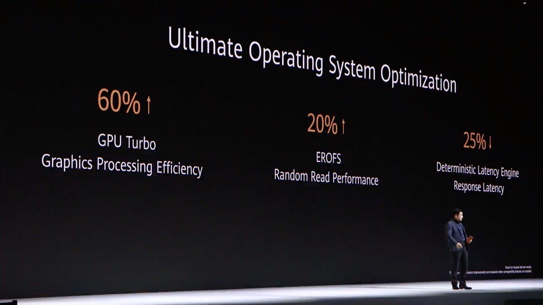 電力効率ではCPUで23%、GPUで32%、NPUで290%省電力化し、さらにOSなどのプラットフォームの最適化によってGPU Turboは60%、EROFSによるストレージのランダムリードは20%、Deterministic Latency Engineで応答速度は25%向上。なお、HUAWEI Mate 30シリーズの5GはデュアルSIMながら5Gが使えるのは片方のみとなっており、デュアル5Gには非対応。