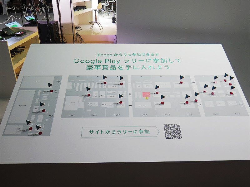 Google Playのブースではアプリの購入やゲーム内の課金などで獲得できるポイントサービス「Google Play Point」を大きくアピールしていました。また昨年から引き続き開催されていたポイントラリーでは100ポイントごとに豪華景品やGooglePlayポイントが当たるブース内の巨大ガチャにチャレンジ可能でした。