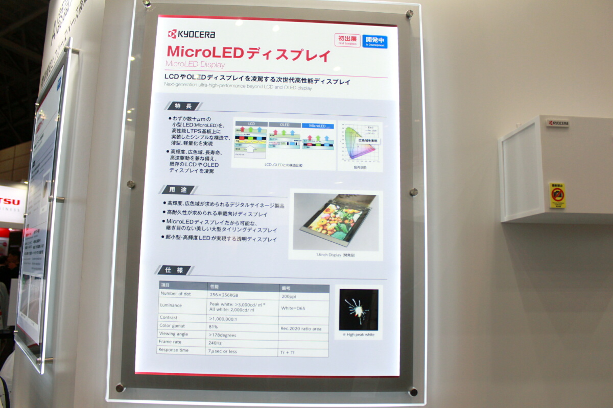 今回は、そんな京セラブースに展示されていた初出展品の中から「MicroLEDディスプレイ」や「FIRカメラ」などのいくつかの注目したい展示をまとめて紹介する。