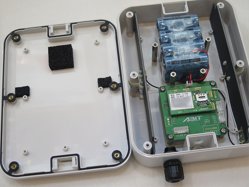 バッテリーや通信アンテナは内蔵しており、長期間利用時の耐久性を向上させています。電源のオンオフは磁気スイッチで本体を開かずに操作可能。これは防塵機能の担保や現地で作業員が中を開いて、ヒューマンエラーによる内部の破損を防ぐためのものでもあるということです。