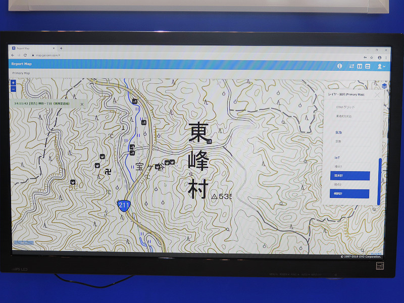 今回、紹介したMAT aqua・MTA thetaは福岡県朝倉郡にある東峰村でテスト運用をすでに行っており、会場内のブースのから現地のセンサーの状態を確認することができました。