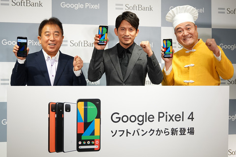 ソフトバンクは24日、Googleの最新スマートフォン(スマホ)「Pixel 4」および「Pixel 4 XL」の発売を記念したセレモニーを旗艦店「ソフトバンク銀座」にて開催しました。販売価格はPixel 4が87,840円(金額はすべて税込)から、Pixel 4 XLが114,240円からとなっています。