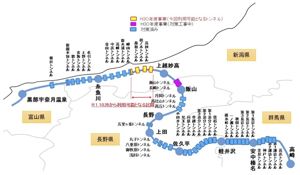 ・総務省|信越総合通信局|北陸新幹線「上越妙高-糸魚川」間全トンネル内で携帯電話の利用が可能に ~電波遮へい対策事業による対策工事が完了~