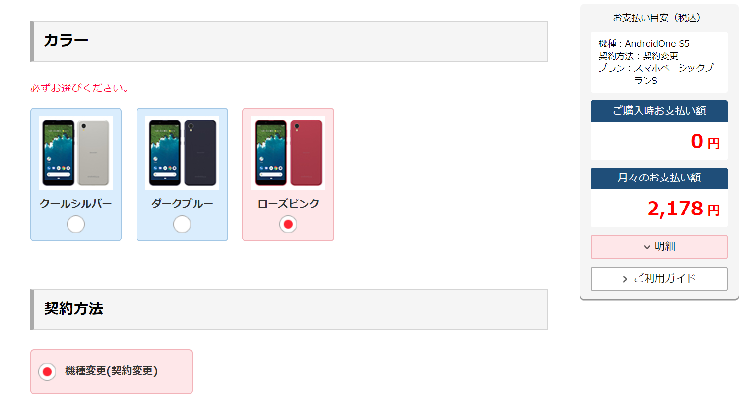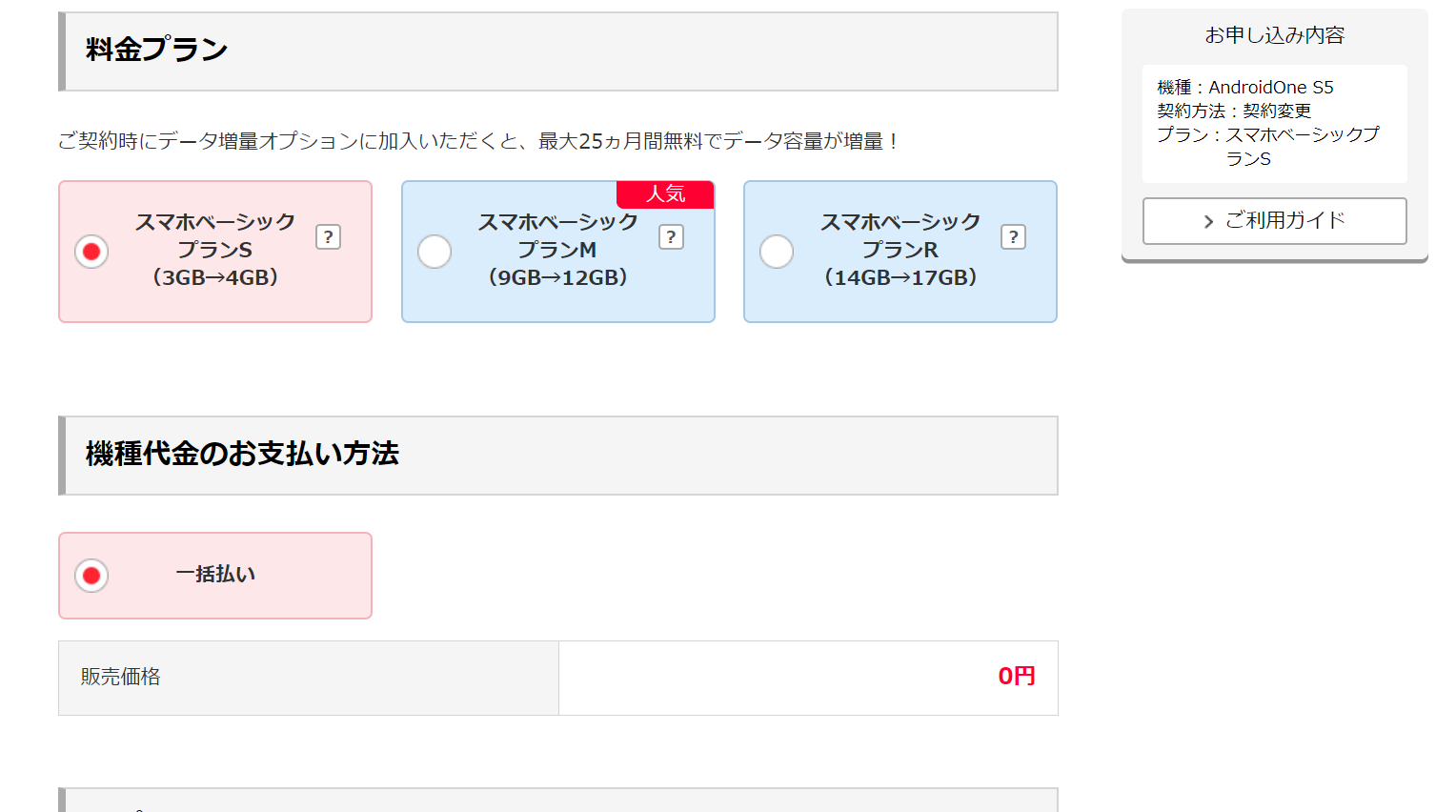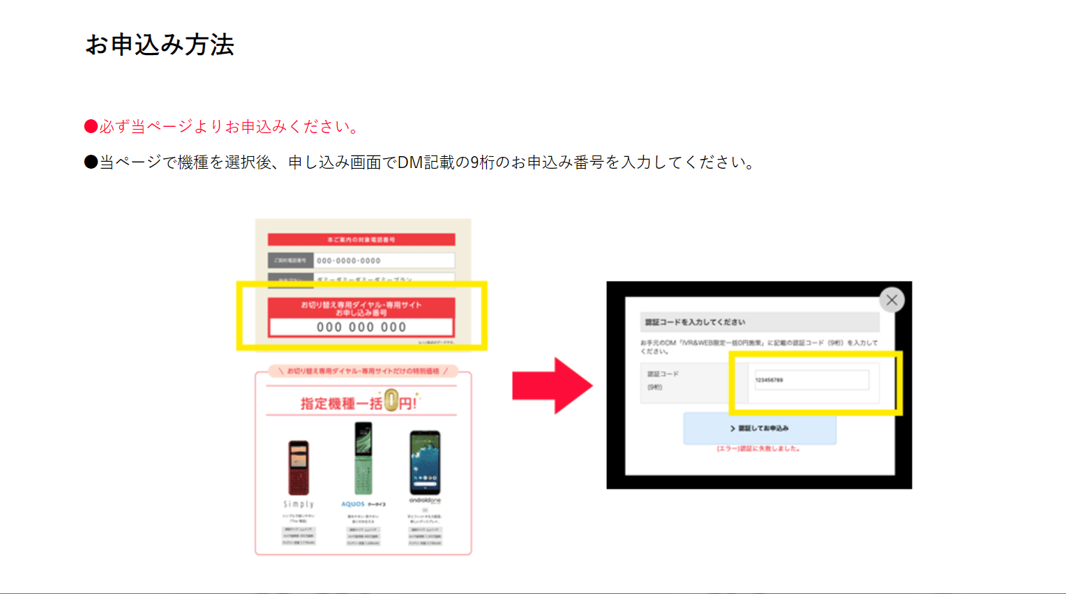 チラシの手順では、専用ダイヤルでの申し込み方法が大きく記載されいたが、専用サイト( https://ymobile.jp/s/phsd1 )からの申し込みもできることが案内されていたので、インターネットでの申し込みを試してみた。