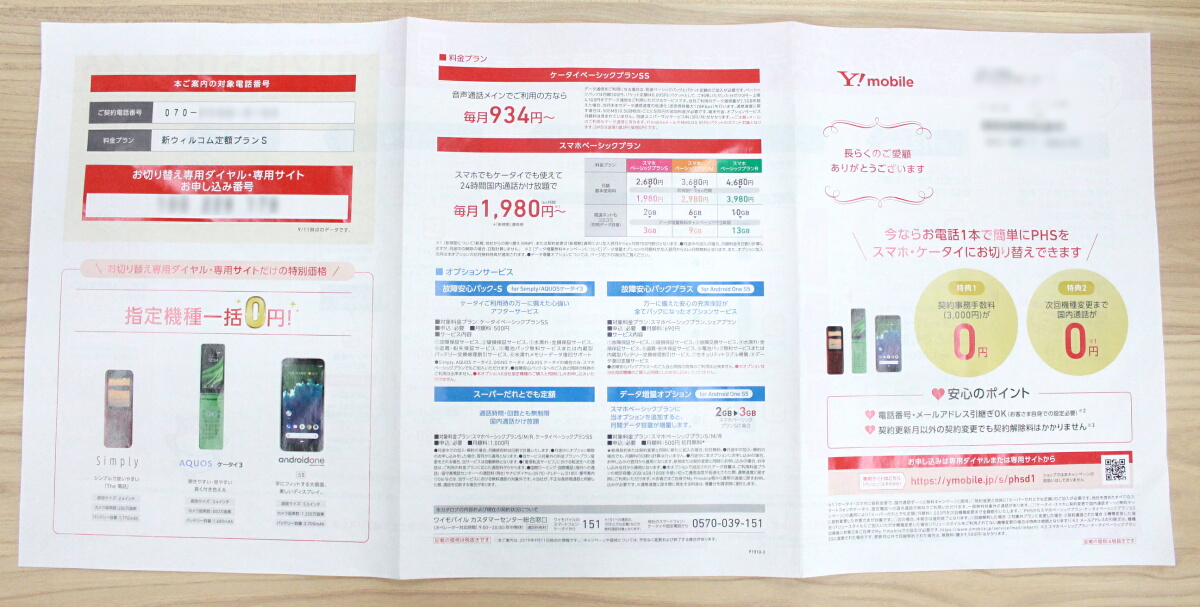 そうした背景がある中、今回届いたダイレクトメールでは現在、PHSサービスを利用している利用者向けに契約変更を促す内容が案内されていた。今回はこのダイレクトメールの案内に沿って、ウィルコム(その前進のDDIポケットを含む)時代から契約していたPHS回線をワイモバイルに契約変更してみたので、その様子をレポートする。