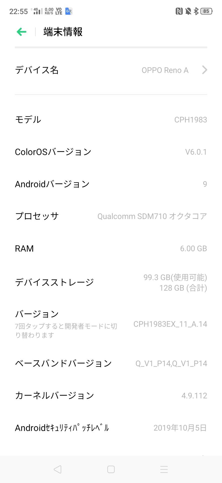 まずは楽天モバイルから内蔵ストレージが128GBと大きい「OPPO Reno A 128GB」が10月1日に発売され、それ以外の仮想移動体通信事業者(MVNO)や量販店、ECサイトでは内蔵ストレージが64GBのモデルが10月18日より順次発売されています。なお、どちらのモデルも型番は「CPH1983」と同じとなっています。