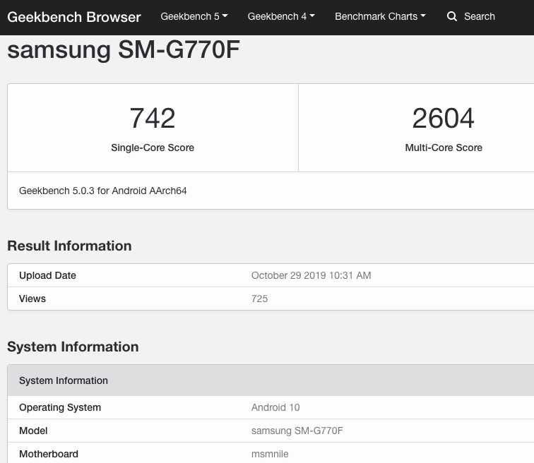 ベンチマークアプリ「Geekbench」が公開している結果ではGalaxy S10 LiteのSnapdragon 855および8GB内蔵メモリー(RAM)を搭載したモデルでシングルコアなら742、マルチコアなら2604、Galaxy Note10 LiteのExynos 9810および6GB RAMを搭載したモデルでシングルコアなら667、マルチコアなら2030と掲載されており、ともにOSはAndroid 10とされています。