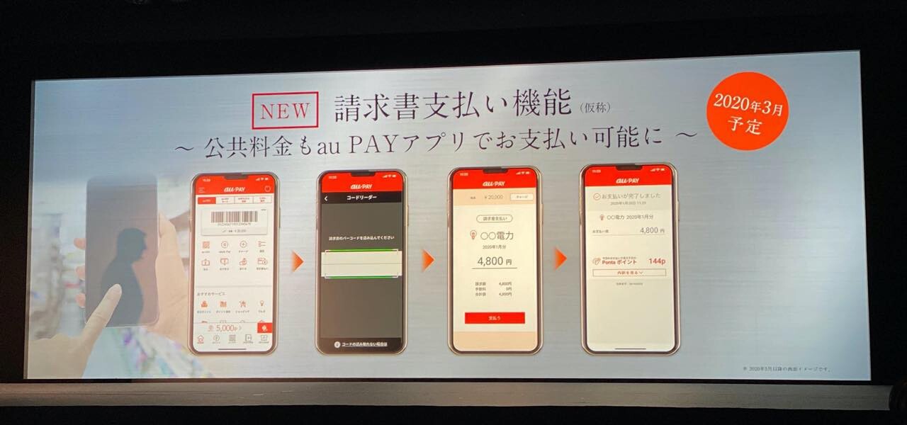 これにより、au PAY アプリはひとつのアプリで利用者の家計や日常生活にかかるすべての入り口となる金融サービスに強い「スーパーアプリ」をめざしていき、新たに公共料金の支払いができる「請求書支払い機能」や「おつり投資 for auでんき」を3月に提供開始するほか、「au PAYカード オートチャージ機能」を2020年上期に提供します(サービス名はともに仮称)。