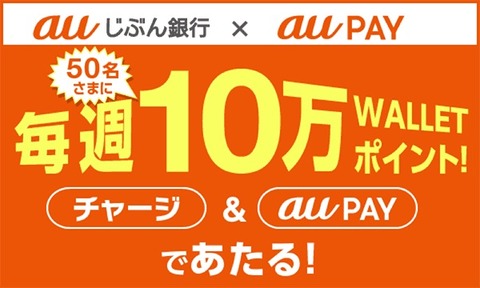 ・auじぶん銀行×au PAY、毎週、50名に10万ポイントを還元するキャンペーン開催 | au WALLET・au WALLET Market | au