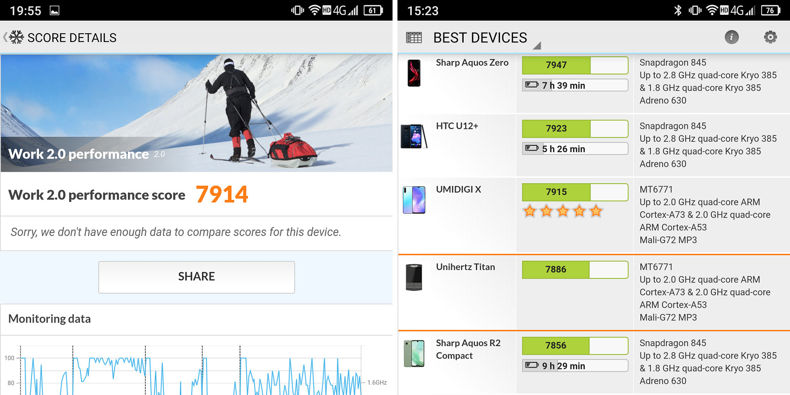 個人的にはPC Markのランキングにて昨年発売されたフラグシップ級スペックのコンパクトモデル「AQUOS R2 Compact」に僅差で勝ってしまっているのはちょっと驚きましたが……。