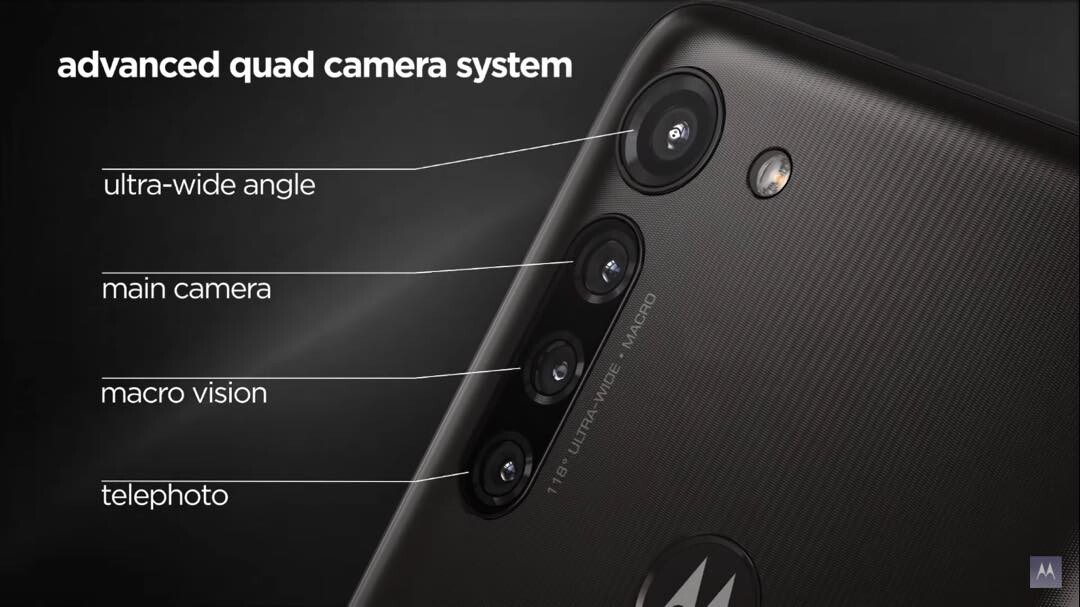 カメラは背面が約1600万画素CMOS(1画素1.12μm)/F1.7・広角レンズに加え、2cmまで寄れる約200万画素CMOS(1画素1.72μm)/F2.2・マクロレンズや118°のワイド撮影ができる約800万画素CMOS(1画素1.12μm)/F2.2・超広角レンズ、光学2倍相当の撮影ができる約800万画素CMOS(1画素1.12μm)/F2.2・望遠レンズの4眼構成。